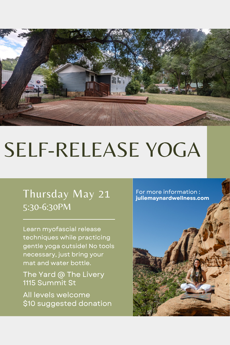 Learn myofascial release techniques while practicing gentle yoga outside! No tools necessary, just bring your mat and water bottle.